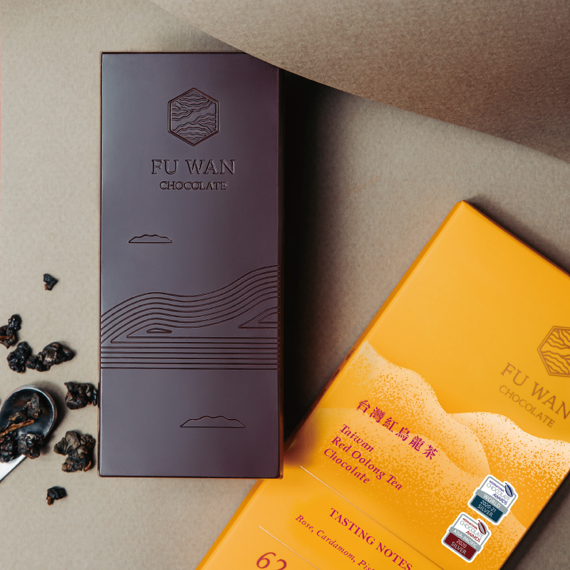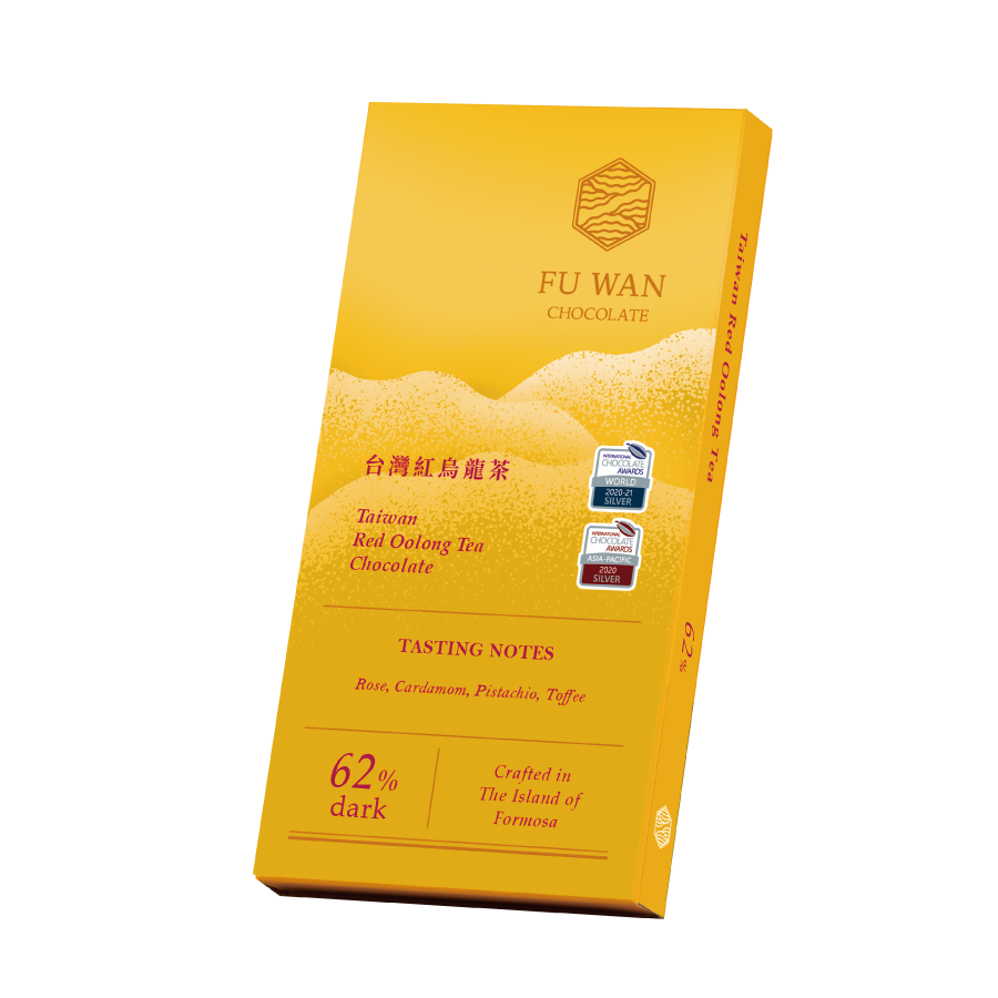 以台灣一號62%巧克力為基底,融合少見的高山紅烏龍茶雍容雅致的玫瑰、荳蔻風韻及馥郁茶香,轉化出開心果及杏仁的堅果調性。